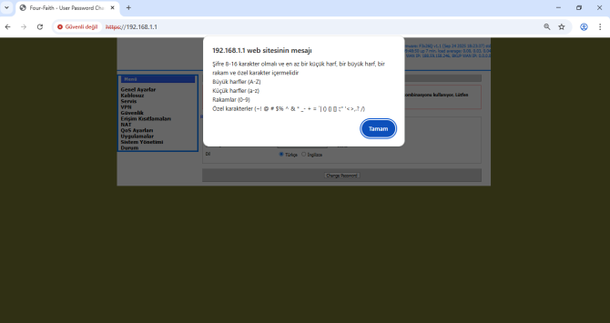 - 192.168.1.1 Lokal IP üzerinden erişim sağlıyoruz.