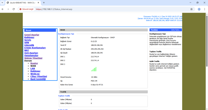 “Yerel IP” kısmında GSM kartımızın IP’sini görebiliriz.
