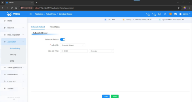 Bu ekranda modemin otomatik olarak hangi süre periyotlarında yeniden başlaması gerekiyor onu ayarlayabilirsiniz. Fabrika ayarlarında bu kısım otomatik olarak ayarlı gelir. Hergün gece yarısı 00:30 da restart edecek şekilde ayarlıdır. Siz kendinize göre bu ayarı değiştirebilirsiniz. Hatta saniye cinsinden de periyodik bir süre belirleyebilirsiniz. Bizim tavsiyemiz standard ayarlarda kalması yönünde.
