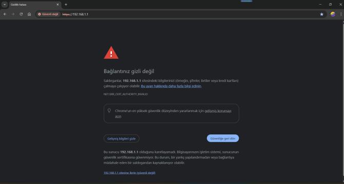 https://192.168.1.1 ile modem web arayüzüne giriş yapacağız. Expolorer açıyoruz. Tavsiye olarak Firefox u kullanabilirsiniz daha az problem ile karşılaşırsınız. Bizi karşılayan sayfada, ''Gelişmiş'' sekmesine tıkladığımızda; sayfanın altında ''192.168.1.1 sitesine ilerle (güvenli değil)'' uyarısına tıklayarak cihaz arayüzüne giriş sağlıyoruz.