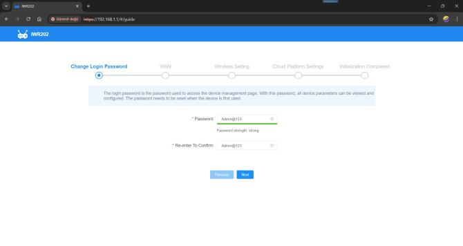 İlk kurulumda Kullanıcı adı ve şifresi admin /admin olarak girmeliyiz. Daha sonraki aşamalarda sizlerden yeni bir şifre oluşturmanızı isteyecek. Yeni oluşturulan şifre kombinasyonlu olarak tanımlanmalı. Güçlü bir şifre oluşturmanızı isteyecektir. Büyük harf, küçük harf, rakam ve işaretlerden oluşturulmalı. Aksi takdirde şifreyi Kabul etmeyecektir. Sistem aynı şifreyi sizden tekrar girmenizi isteyecek ve onaylamanızı isteyecektir.