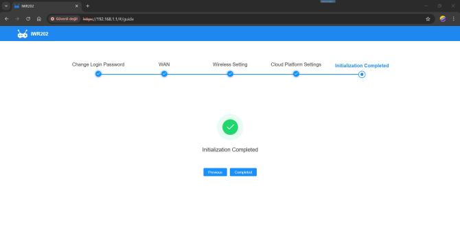 İlk kurulumu başarı ile tamamlıyorsunuz. Completed’a tıklayıp ilerleye bilirsiniz. Kurulum tamamlanıyor uyarısı gelecektir. Modem web arayüzü açılacak ve sizden yeni atamış olduğunuz kullanıcı adı ve şifresini isteyecek. Şifre ekranına belirlemiş olduğunuz şifrenizi yazıp ilerleyebilirsiniz