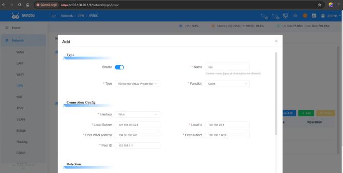 Aşağıda ki görseller de VPN formunda iletilen bilgilere göre dolduracağınız yerleri yazmalısınız. Eğer ki siz kendi cihazlarınız için kuruyor iseniz belirlediğiniz network ayarlarını girmelisiniz. Örnekte bağlantı tipi function kısmında Client olarak ayarlandı. Server olarak kurmak istiyor iseniz function u Server olarak seçmelisiniz.