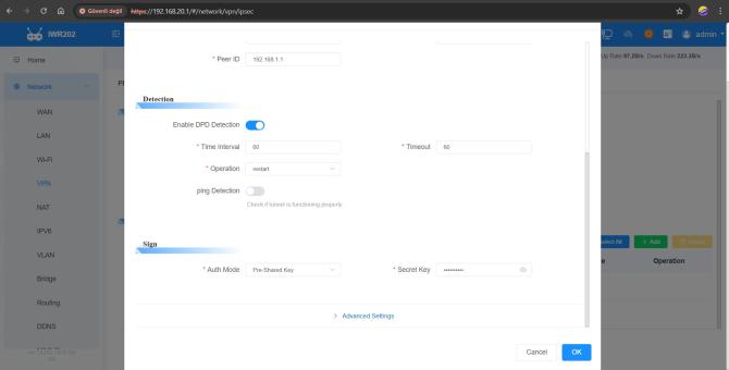 Şekil 6.4 VPN Ipsec Detection ve Şifre Parametreleri Girişi