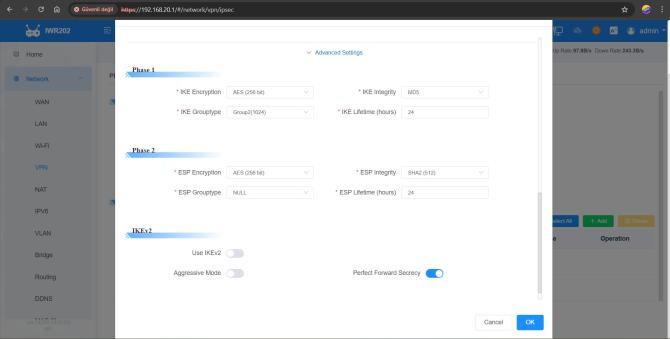 Şekil 6.5 VPN Ipsec Faz Parametreleri Girişi