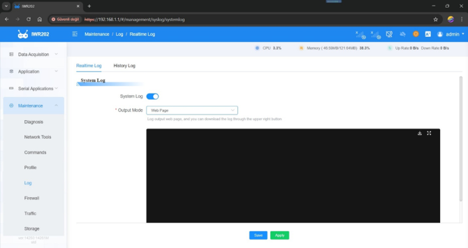 Sys Log kayıtları bu ekrandan aktif ediliyor. Modem de meydana gelen hatalara ait loglar bu ekranda görülür. Hata tesbiti için sys log kayıtları incelenir tesbit edilen hataya göre Çözüm bulunur.